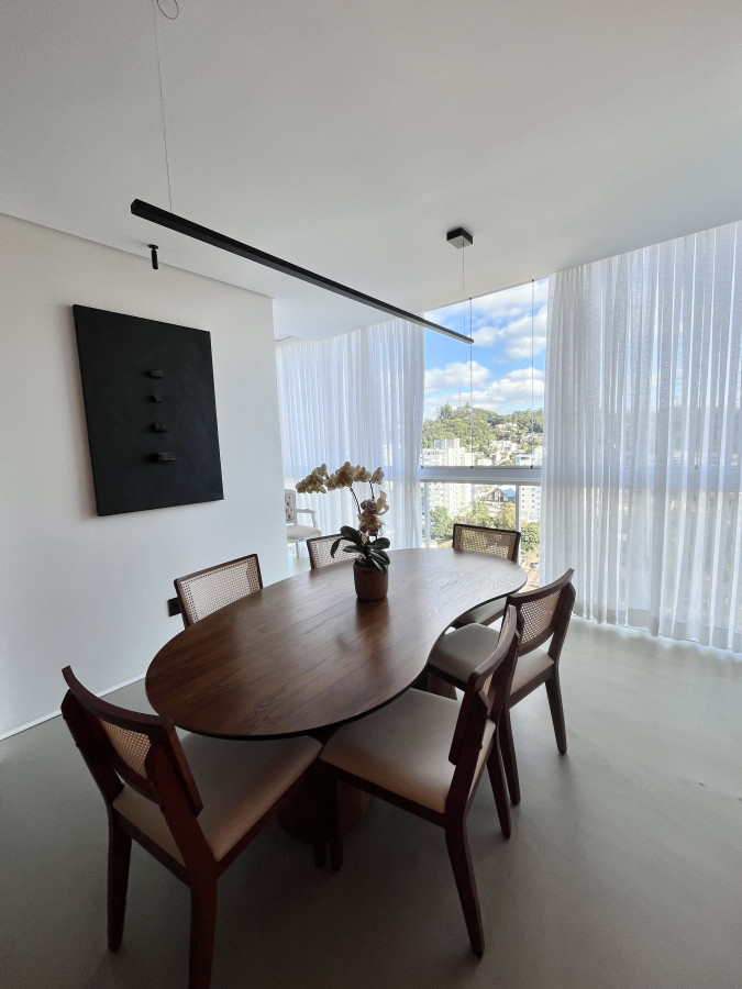 Na parte inferior do imóvel, a cobertura oferece uma suíte e dois quartos adicionais, além de sala e cozinha integradas, com ambientes amplos e bem iluminados. A área de serviço é funcional e bem posicionada. Os espaços contam com uma bela vista, proporcionando conforto e bem-estar no dia a dia.