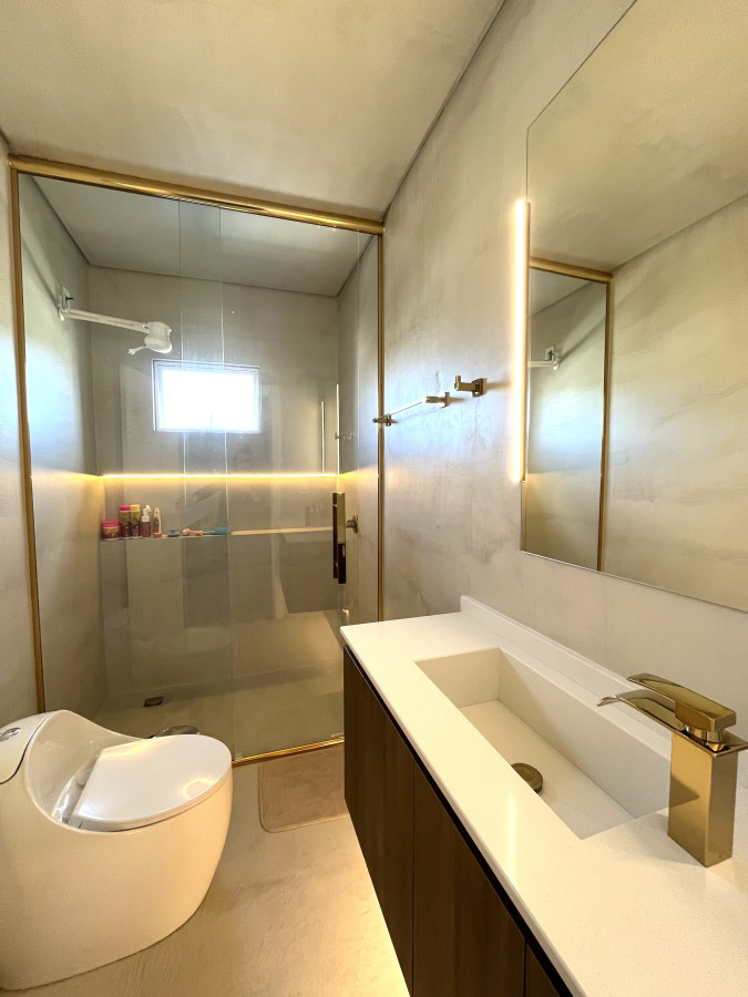 No andar superior, o destaque fica para a área de festas integrada à piscina privativa, ideal para receber amigos e aproveitar momentos especiais com total privacidade.